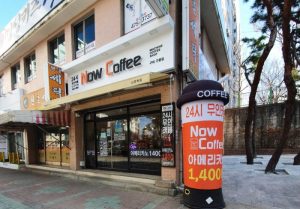 (※無人カフェとは、コーヒーマシンが置いてあり、客がセルフで入れて飲むお店。無人カフェのチェーン店「Now Coffee」は韓国に500店舗以上ある)