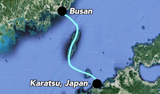 韓国は対馬沖までで短いけど日本は九州本土~壱岐~対馬~対馬沖までで