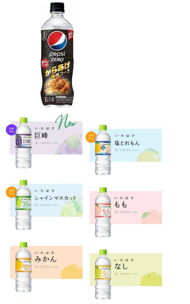 写真にも透明な飲料は期間限定っぽいコーラくらいしかないし、例に出てた「いろはす」自体、韓国でいうところの「2%足りない時のドリンク」みたいなやつだよ 👍3