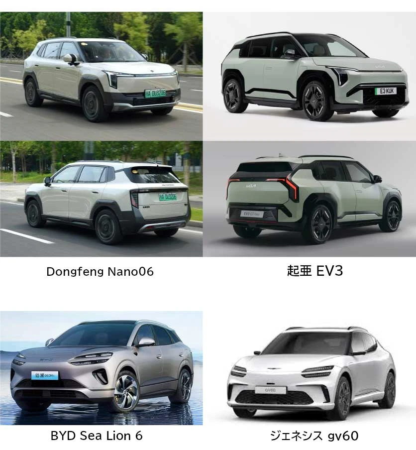ドンファンNano06の中国での価格は約163万円~約223万円。キアEV3はその3倍の価格とのこと。