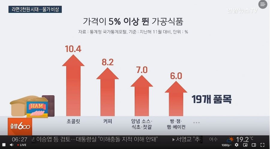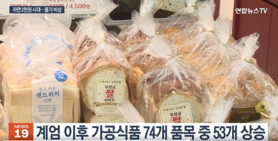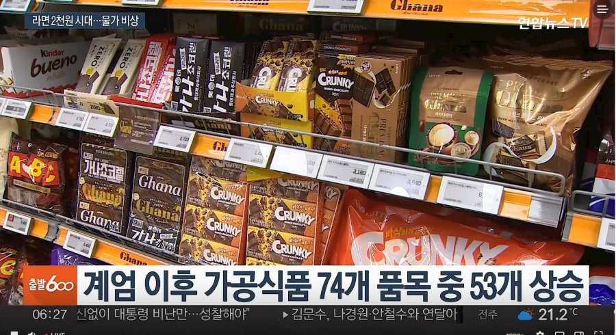 戒厳令以降、加工食品74品目中、53品目が上昇