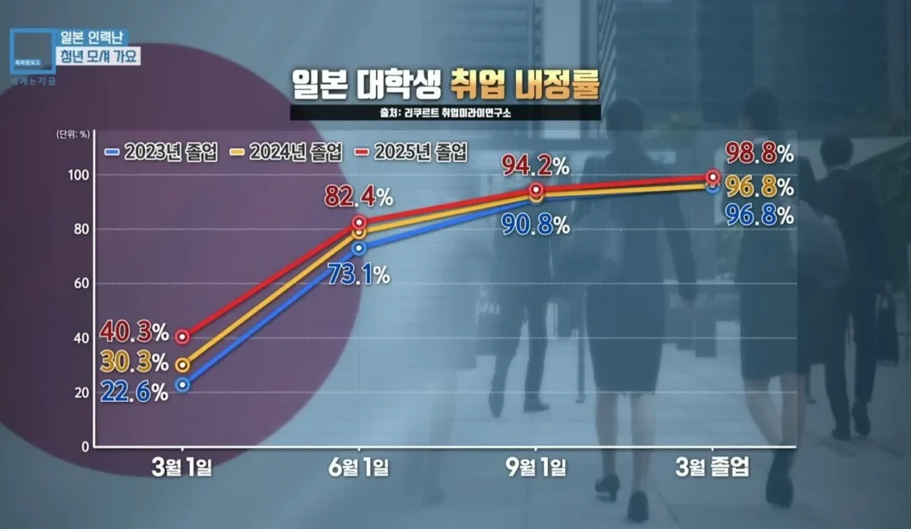 こうした取り組みの結果、今年3月の日本の大学生の内定率は98.8%に達した。
