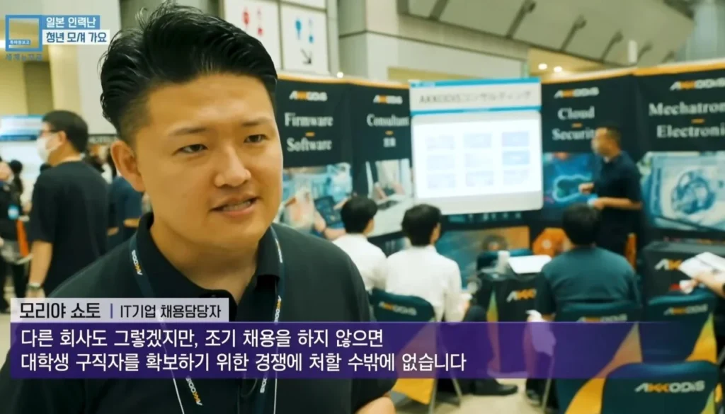日本の企業は若者を確保しようと、こぞって早期採用のPRを行い、