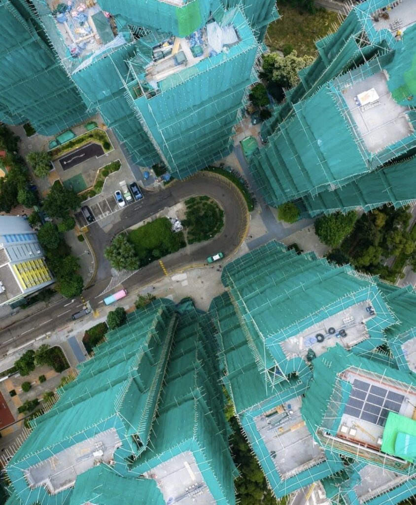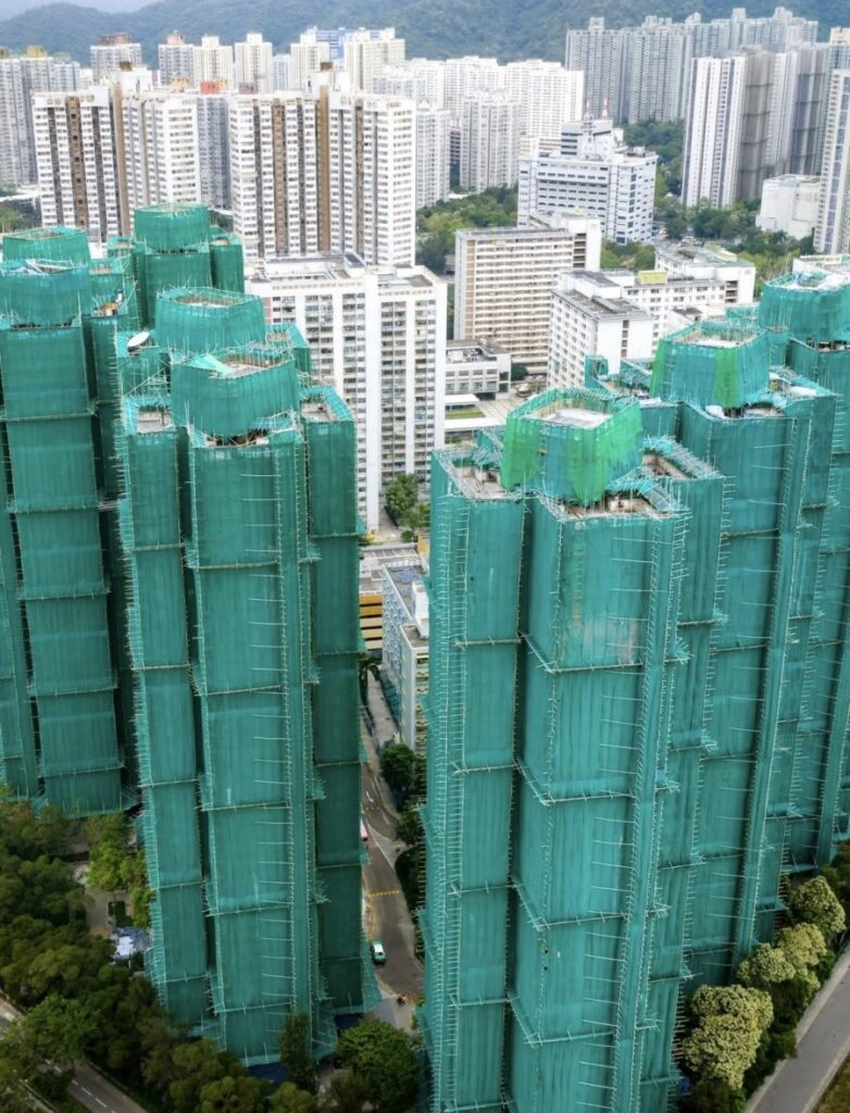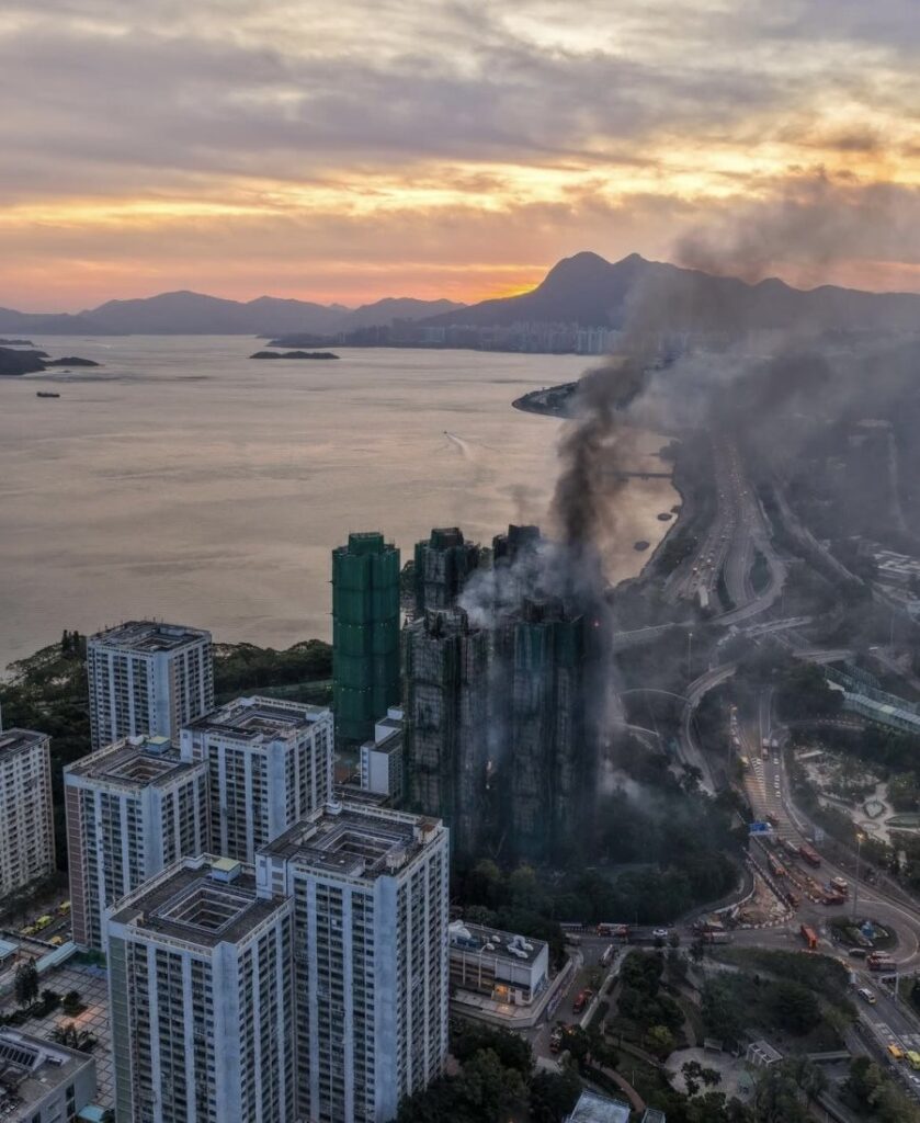 11/26、香港で発生した高層マンション群の大規模火災は、外壁改修工事のために組まれていた足場から出火し、強風と可燃性の防護シートが火勢を拡大させたことで7棟の建物に延焼し、多数の死傷者が出ました。
