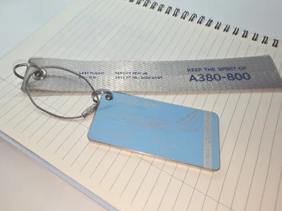 飛行機を解体する時、機体を溶かしてキーホルダーの形にした「Aviation Tag」っていうのを、航空オタク向けにたくさん売ってるよ。 👍254👎1