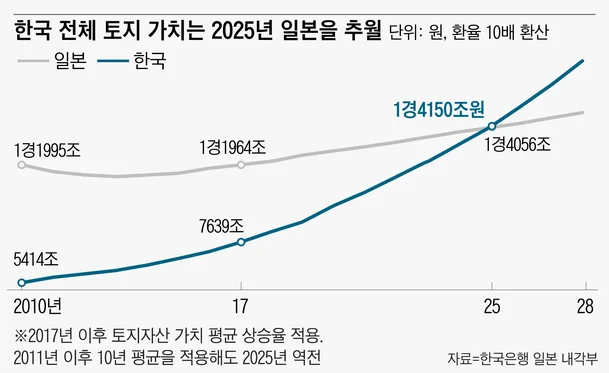 (グラフが交差している部分は、日本が1京4056兆、韓国が1京4150兆)